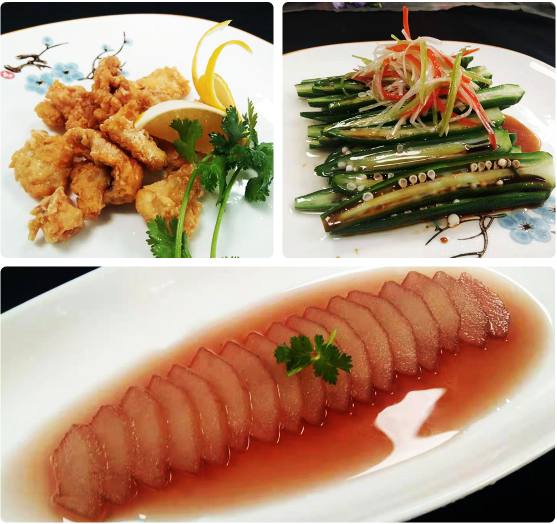 中国风味的餐食菜肴。其中有粤菜、川菜、鲁菜、淮扬菜、浙菜、闽菜、湘菜、徽菜、东北菜、冀菜、豫菜、鄂菜、本帮菜、客家菜、赣菜、京菜等。