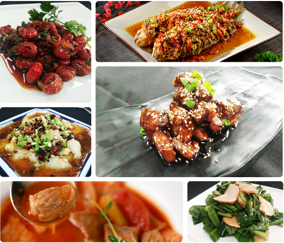 高阶:松鼠鱼、樱桃丸子、西红柿牛楠、夫妻肺片、白扒通天翅、豆瓣鲫鱼、梅菜扣肉、七星鱼丸汤、鸡汤煮干丝等40品。