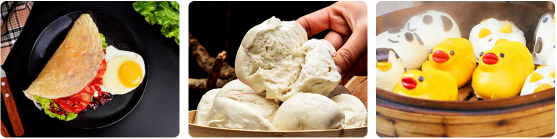 6、特色面团的制作和品种:馍矶,驴打滚,开口笑,糯米糍,流沙包,奶黄包,粽子,烧麦,虾饺等20品种。