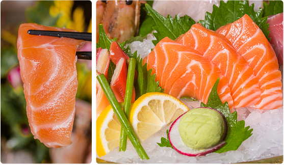2、刺身种类:三文鱼,金枪鱼,扇贝,北极贝,三文鱼籽,八爪鱼,贝类,鲷鱼,海虾,螺肉,鲜鱿鱼,这些刺身的刀工和摆盘。