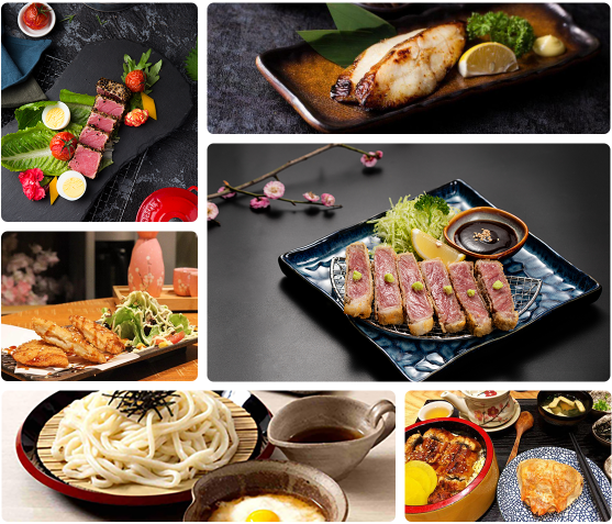 3、煎炸:牛排,猪排,鱼排,照烧鸡,鳗鱼玉子烧,大阪烧。煮物:关东煮,煮鱼,牛肉煮土豆。炸物:炸什锦天妇罗,炸鱼饼,炸猪排,炸鸡。锅物:寿喜锅,涮牛肉火锅,海鲜锅。定食:烤鳗鱼的定食,炸猪排的定食,刺身寿司定食。面类:热牛肉乌冬面,荞麦面,凉乌冬面,细面。沙拉:蔬菜沙拉,海鲜沙拉,牛舌沙拉。盖饭:猪排盖饭,鳗鱼盖饭,炸鸡盖饭。拌菜:浅咸菜,醋拌八爪鱼,南蛮鱼。