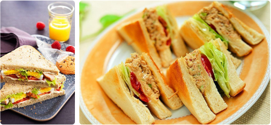 4、三明治系列:公司三明治,鸡蛋西红柿三明治,金枪鱼三明治,扒蔬菜三明治等。