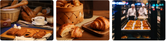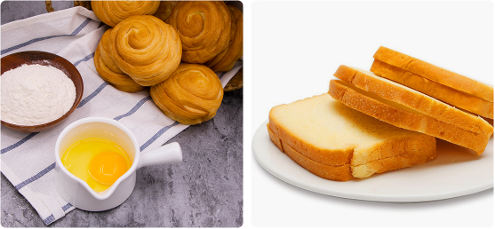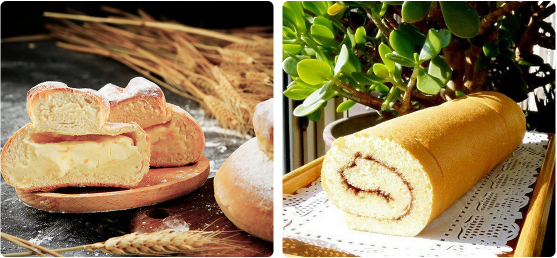 3、面包类:小餐包,小牛角,蜂蜜面包,菠萝包,杂粮包,无糖列巴,低糖面包,胡萝卜面包,养生包等20品种。