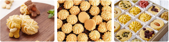 5、曲奇类:曲奇饼干,可可曲奇,大理石饼干,手指曲奇,罗马饼干,蛋黄饼干,芝士饼干等20品种。