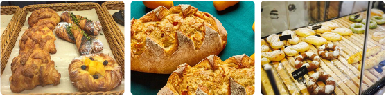 5、面包类:摩卡面包,匈牙利面包,法式乳酪,芝士面包,各式软欧包,法式面包,披萨,巧克力甜甜圈,酵母面包,农夫面包,布里欧修,炭烧咖啡面包等。